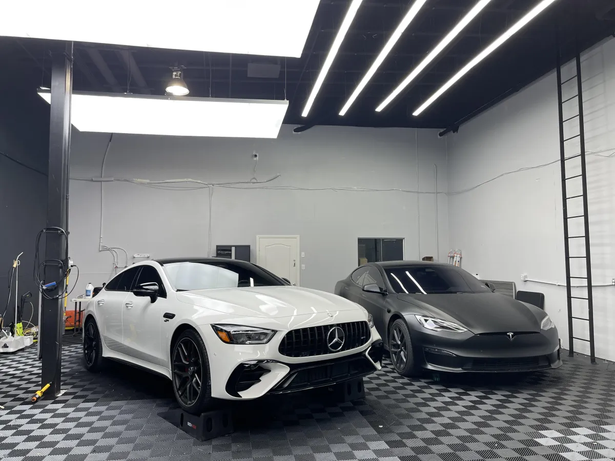 Each installation begins with a thorough wash, chemical decontamination, and clay bar treatment to remove bonded contaminants, ensuring the paint surface is clean so the film can adhere evenly and perform as intended.